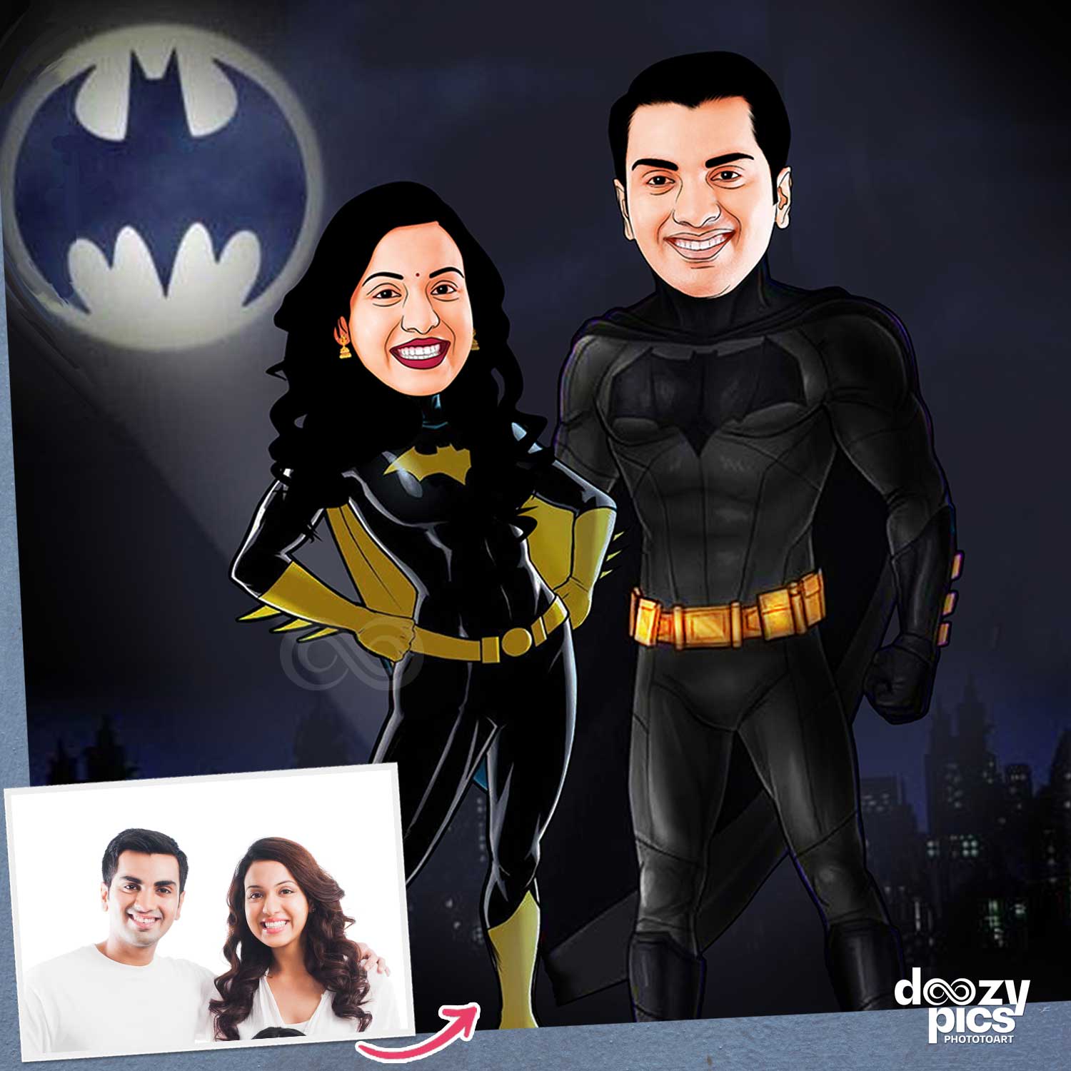 Dark Knight Batman Couple Caricature